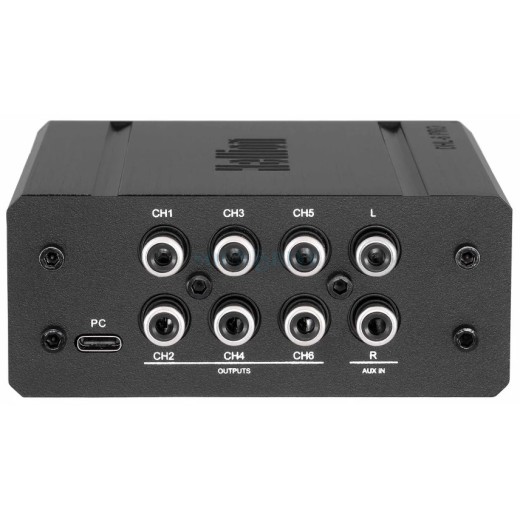6-канальный аудио процессор предоставляет все необходимые инструменты для точной настройки звучания. Каждый канал оснащен независимыми регулировками: активные настраиваемые фильтры, многополосный эквалайзер, регулировка временных задержек.